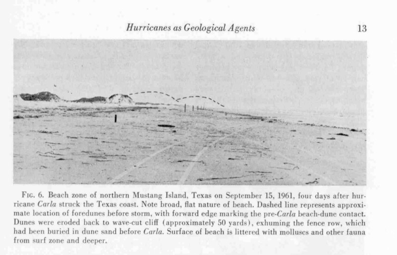 shows the massive erosion of the dunes on Mustang Island by Carla.
